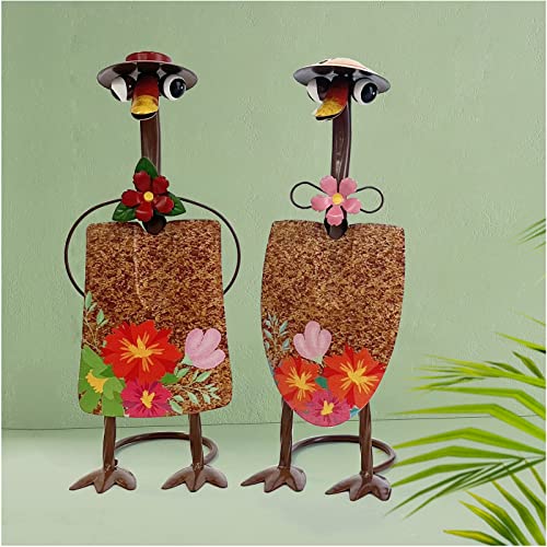 HONGLAND Metall anka trädgårdskonst, spadar prydnader anka trädgårdsstatyer, utomhus par anka trädgårdsdekor, bondgård gräsmatta juldekorationer, inflyttningsträdgård gåva – 2-pack