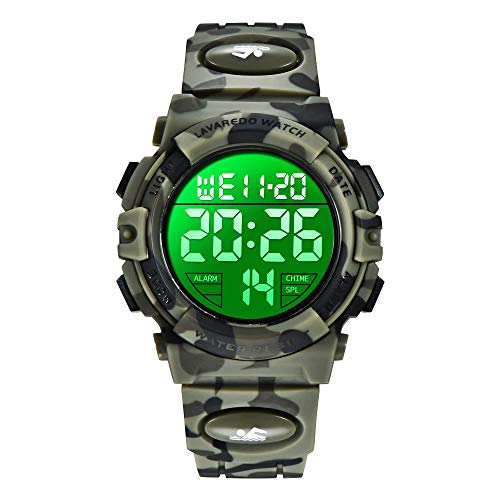Forrader Digitala sportklockor för män, vattentät utomhus sportklocka med LED-bakgrundsljus/larm/nedräkningstimer/Dual Time/Stopwatch/12/24H handledsklockor för män kvinnor tonåringar, Svart/grön