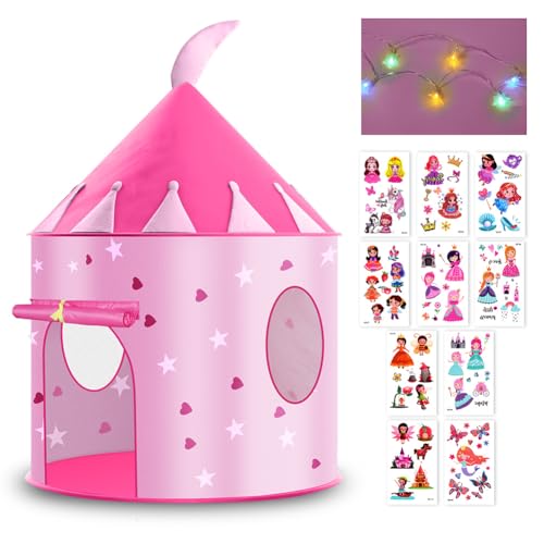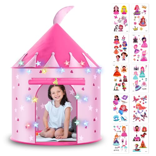 HOTUT Princess Castle Play Tent, lektält barntält för inomhus utomhus, barntält med LED-lampor, lektält med klistermärken, gåva för barn, Leksakstält, Kids Tent för barn pojkar flickor småbarn