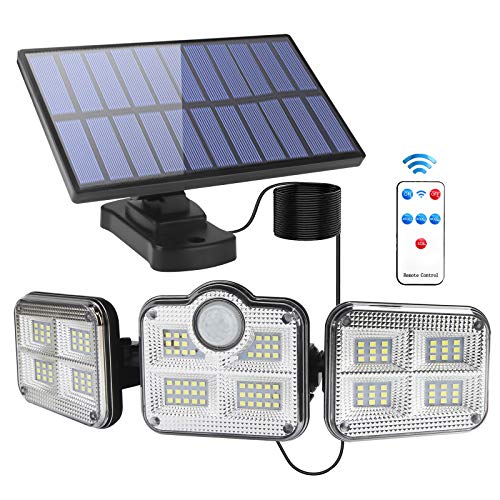 Sollampor utomhus inomhus – LED solrörelsesensor lampor 3 justerbara huvuden 270° belysning: Säkerhetsstrålkastare vattentäta soldrivna vägglampor med fjärrkontroll och 5 m kablar