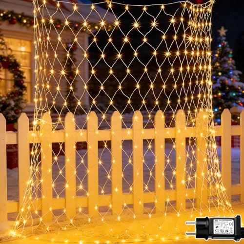 HENGMEI LED-ljusnät, ljusslinga utomhus och inomhus, 6 x 4 m, ljusslinga, nät med kontakt, 8 lägen IP44 vattentät, ljusgardin för jul, halloween, bröllopsfest (6 x 4 m, varmvit)