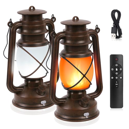 Shinmax lyktor för utomhusbruk 2 stycken retro LED-lyktor USB uppladdningsbar lykta utomhus med fjärrkontroller lykta för veranda, terrass, gård, trädgård, camping
