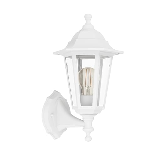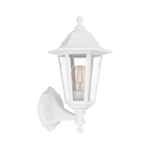 EGLO Olgiata-E Vägglampa för utomhus, vintage, utomhuslampa, lykta av vit och transparent plast, E27-sockel, IP44