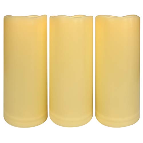 CANDLE IDEA 3 st 18 cm vattentäta LED flamlösa timerljus, 1 000 timmar lång batteritid/flimrande driven elektrisk stor pelare för utomhus lykta festivaldekor etc., elfenben (1903T30718M-3I)