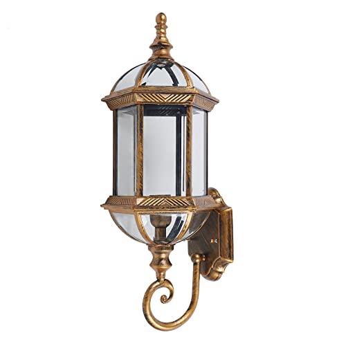 QRANSEUYXY Vintage glas vägglampa, metall retro ljus, guld utomhus vägglampa, lykta vägglampa trädgård utomhus, utomhusvägglampa, EZ7 lampa för trädgård landskap