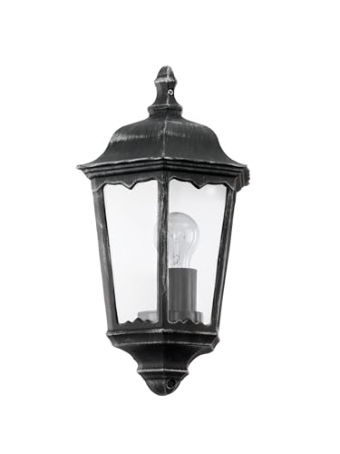 EGLO Vägglampa utomhus Navedo, utomhusbelysning lykta, utomhuslampa i svart aluminiumgjutning med silverpatina, klart glas E27-sockel, IP44