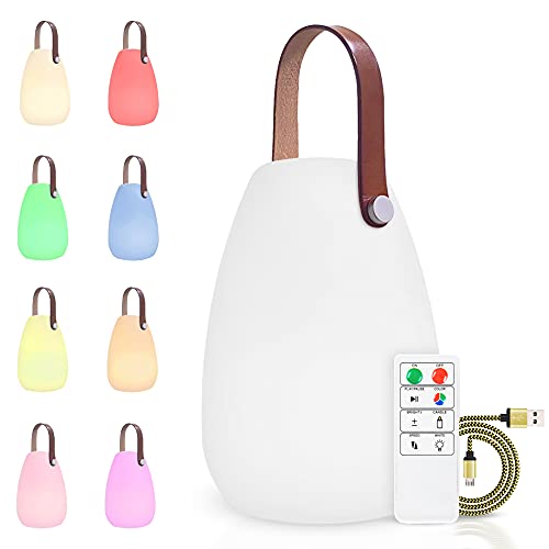 IROO LED-bordslampa för utomhus camping lykta med fjärrkontroll varm vit 8 färger dimbar sängbordslampa vattentät, idealisk dekor för ditt hem och trädgård (rund)