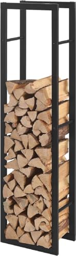Homgoday Träställ, öppen spis registerhylla, vedhylla för inomhus och utomhus vedvedställ i stål utomhus vedhylla inomhus matt svart, 80 x 28 x 154 cm
