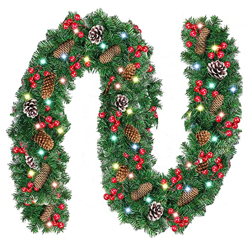 KOOFIT Julgirlang, 2,7 m julgirlang med lampor, förupplyst dekorerad girlang, 2,7 m juldörrskrans, julgirlang för trappor, öppen spis, ytterdörr, hem, utomhus, dekoration