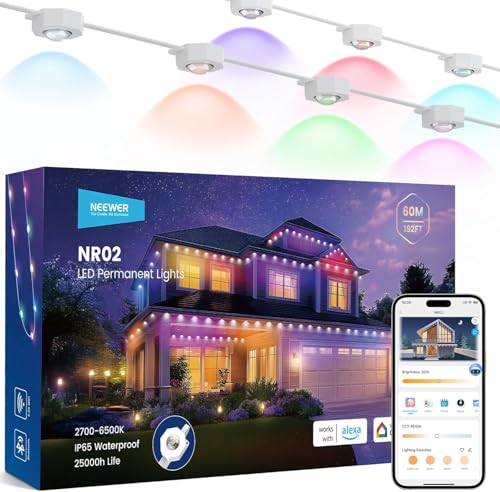 NEEWER 60 m permanent utomhusbelysning för hemdekoration, ljuskedjor utomhus rännor jul Smart AI RGBCW, 120 LED-ljus appstyrning 50+ scener IP65 vattentät, kompatibel med Alexa, NR02