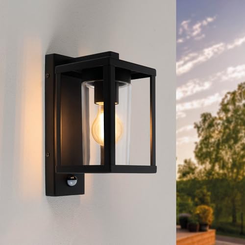 qfzwj Utomhuslampor med sensor, svart rostfritt stål säkerhetsrörelsesensorlampor, IP44 väderbeständig eldriven PIR utomhusbelysning, E27 modern extern extern lampa för hus, trädgård, dörröppning