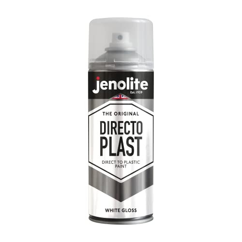 JENOLITE Directoplast sprayfärg för plast – vit, glansig finish, flera ytor inomhus- och utomhusfärg – ingen primer behövs, RAL9016, 400 ml