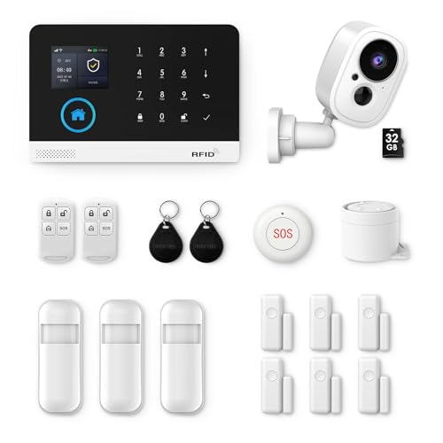 XNY Alarm för hemmet med 1080P utomhuskamera, WiFi/4G hemlarm, larmsystem med kamera, 32 GB SD-kort, rörelsedetektor, dörr- och fönstersensorer, fjärrkontroll