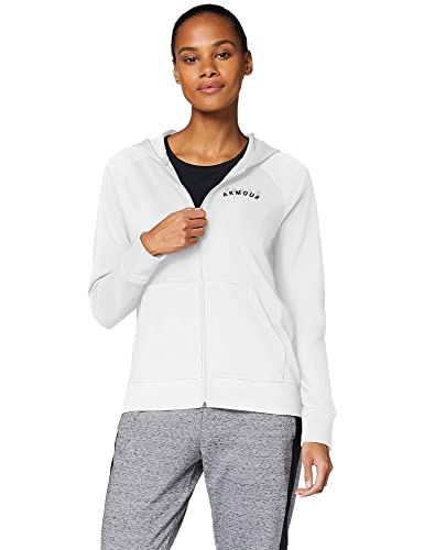 Under Armour Rival Terry FZ huvtröja för kvinnor, sporthoodie, essentiella utomhuskläder (Onyx vit/svart/svart (112)) XL