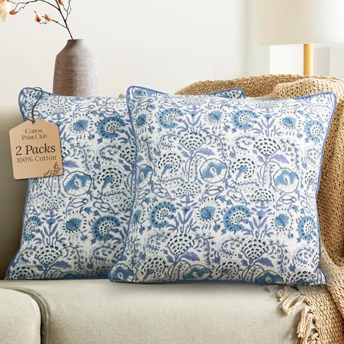 Folkulture Kuddöverdrag för soffan, 20 x 20 dekorativa soffkuddar för vardagsrum, 100% bomull boho-örngott eller söta utomhuskuddar, bondgårdskuddar eller accentkuddar (Blush Blue)