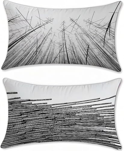 Örngott för soffa 60 x 120 cm dekorativa kuddfodral för soffa säng vit svart linne set med 2 utomhuskuddar vattentäta rektangulära stora abstrakta med dold dragkedja utomhusrum u-14507