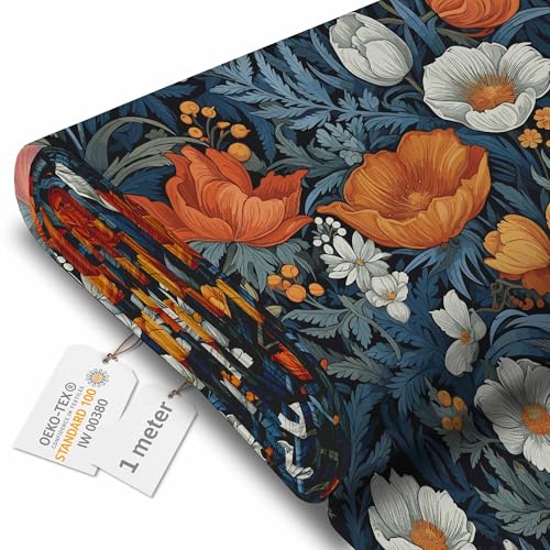 DreamRoots Vattentätt tyg, metervara, 160 cm bredd, 220 g/m², 600D, tyg för utomhuskuddar, 1 m, Flower Bombs