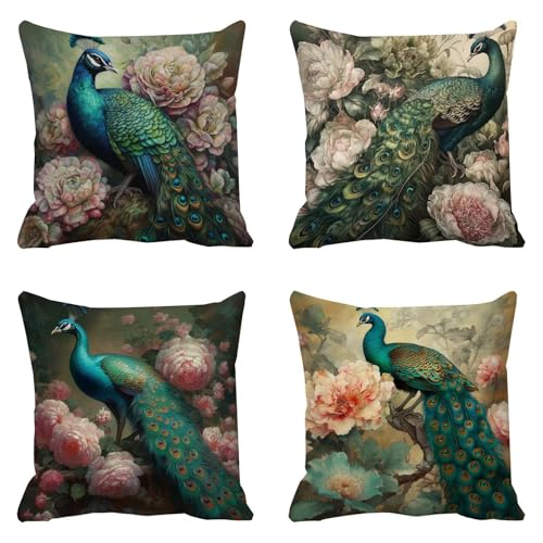 Uppsättning av 4 vattentäta kuddöverdrag 50 x 50 cm utomhuskuddar, djurkuddfodral vattentät trädgård uteplats möbler kuddfodral påfågel för vardagsrum soffa kuddar heminredning gåvor 20 x 20 D-2645