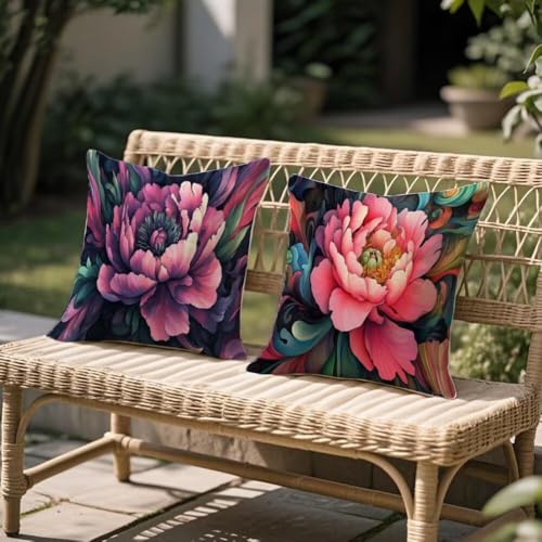 Rosa kuddöverdrag, set med 2, utomhuskuddar 50 cm x 50 cm, blommiga dekorativa kuddar dubbelsidiga mönster, trädgårdssoffa örngott vattentät sammet prydnadskudde överdrag för uteplats soffa
