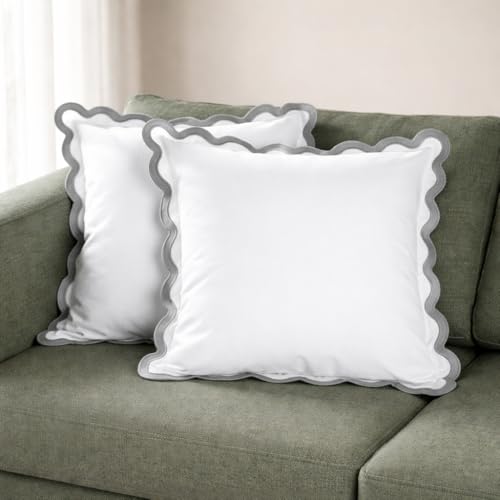 Folkulture Kuddöverdrag för soffan, 45 x 45 dekorativa soffkuddar för vardagsrum, 100% bomull boho-örngott eller söta utomhuskuddar, bondgårdskuddar eller accentkuddar – mineralvit