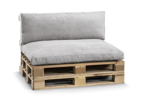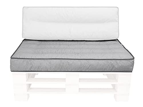 Gutekissen® Pallkudde PWLset PWL Set – Sittdyna 120x80 + Ryggstöd 120x40 – Utomhuskuddar för trädgårdssoffa – Ljusgrå