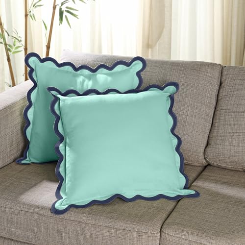 CPC Prydnadskuddöverdrag för soffan, 20 x 20 dekorativa soffkuddar för vardagsrum, 100% bomull boho örngott eller söta utomhuskuddar, blomkuddöverdrag eller Preppy Throw – aquablå