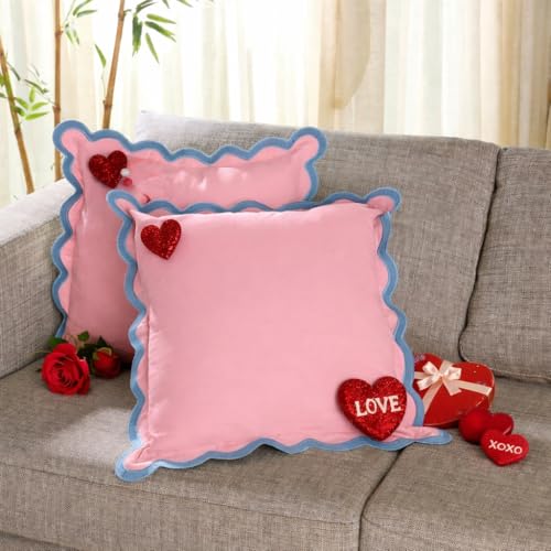 Folkulture Kuddöverdrag för soffan, 20 x 20 dekorativa soffkuddar för vardagsrum, 100% bomull boho-örngott eller söta utomhuskuddar, bondgårdskuddar eller accentöverkast (Laguna Blush)