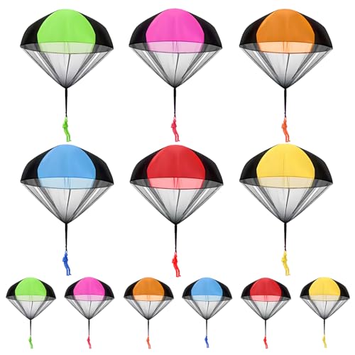 JurciCat 12 Stycken Fallskärm Leksak Fallskärm Barn Utomhusleksaker Spel För Barn Giveaway Barns Födelsedagsfest Gåvor