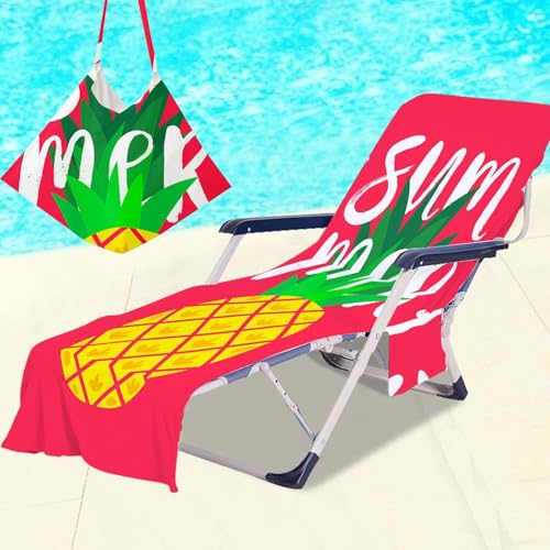 Fasheepfa solstol strandhandduk med fickor, tropiskt frukttryck 3D sommarstolskydd schäslong kompis solsängar handdukar för semester trädgård utomhuspool (ananas, 75 x 210 cm)