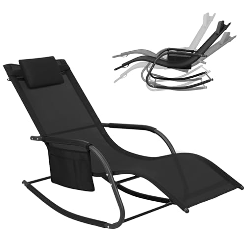 WOLTU Trädgårdsstol, utomhus solstol, trädgårdsgungstol, med nackstöd, armar och sidoficka, för utomhuspool, svart