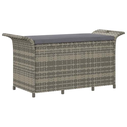 vidaXL Trädgårdsbänk med dyna grå 116x46x57 cm konstrotting, trädgårdssoffor, utesoffa, utomhussoffa, trädgård soffor, utesoffor, altansoffa