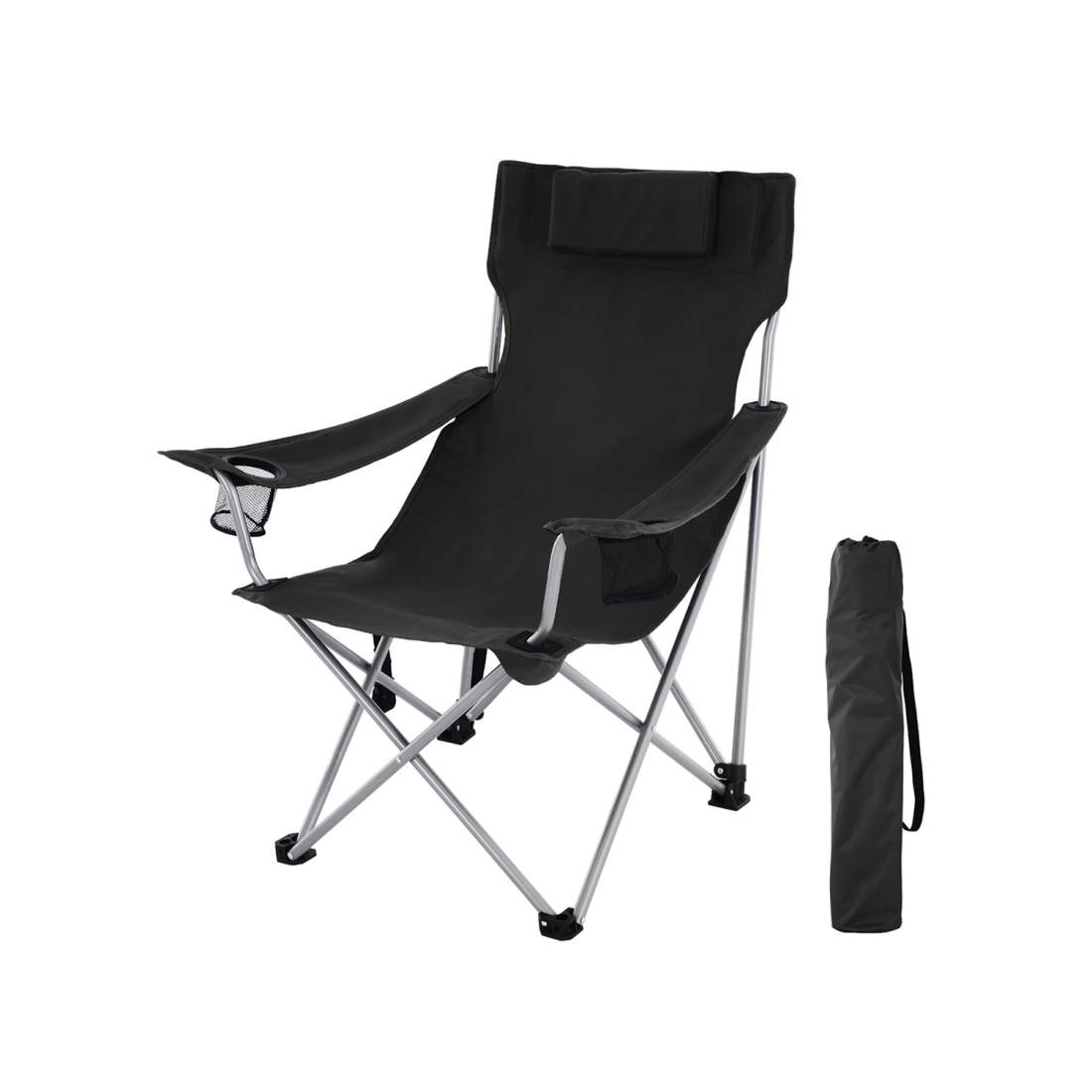 Fällbar campingstol, utomhusstol med armstöd, nackstöd och mugghållare, stabil struktur