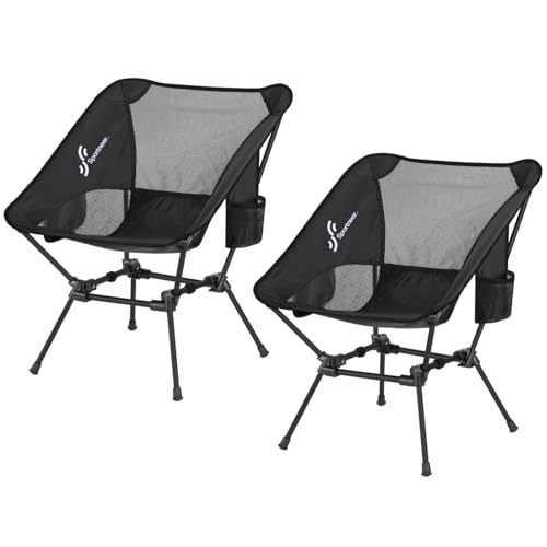 Sportneer Lätt bärbar hopfällbar campingstol, kompakt strand campingstolar för vuxna, hopfällbar ryggsäcksstol utomhusstol för fiske vandring gräsmatta picknick utomhus resor (svart, 2-pack)