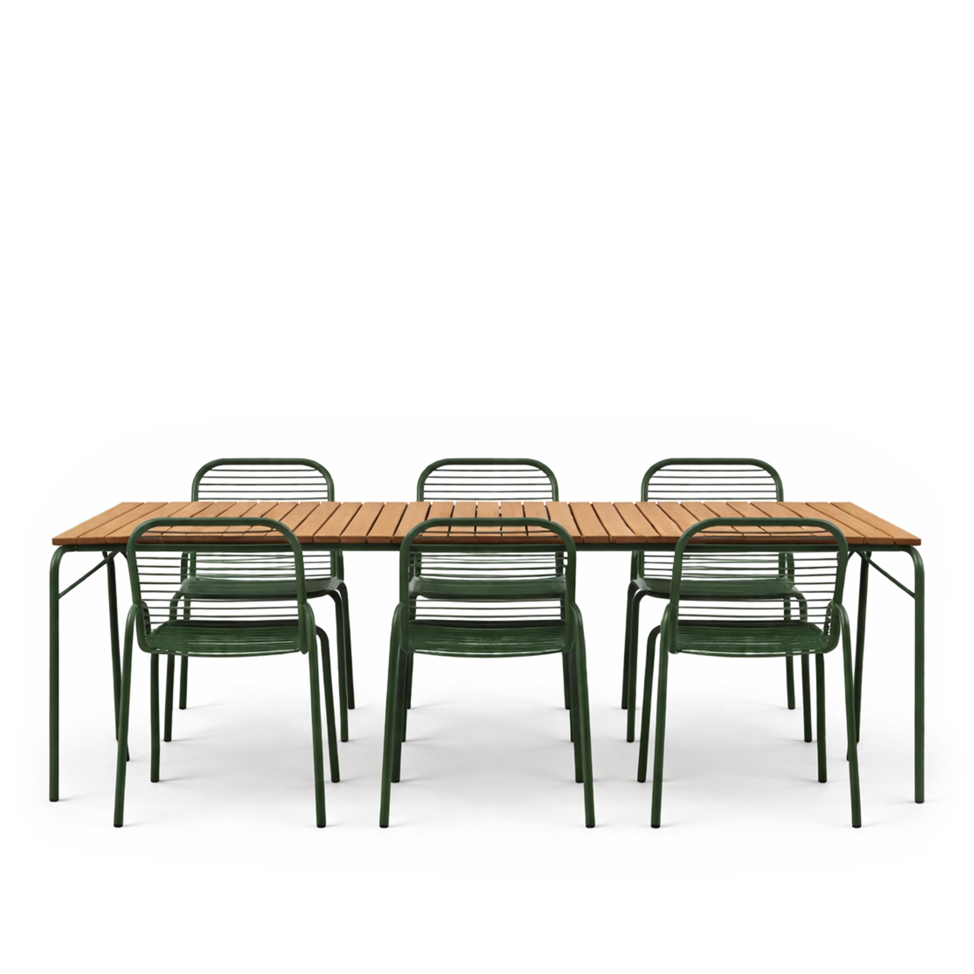 Normann Copenhagen - Vig Robinia utomhusbord 90 x 200 cm & Vig utomhusstol 6 st – Dark Green - Matgrupper utomhus - Simon Legald - Metall/Trä