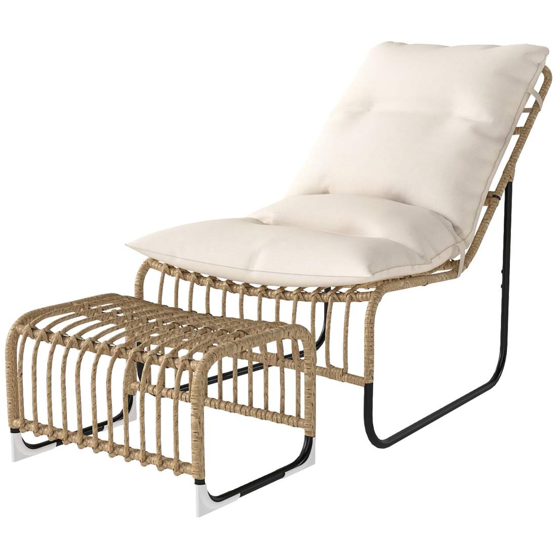 Rottingstol med fotpall UV-beständig trädgårdsstol med kuddband utomhusstol i rotting trädgårdsstol för trädgård, balkong, terra