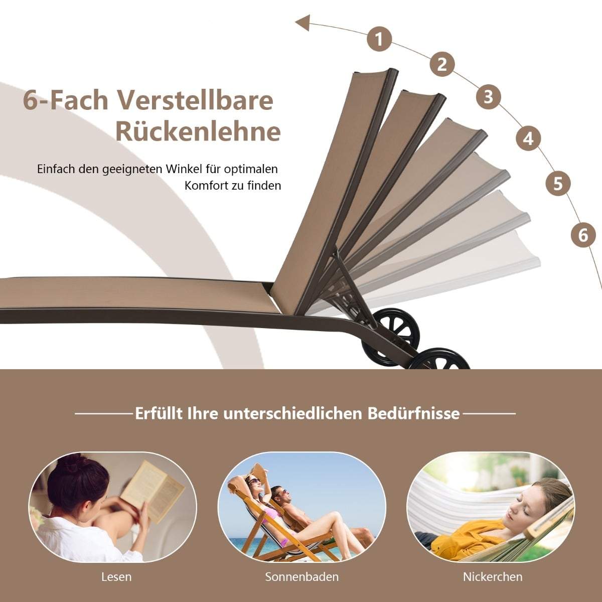 Justerbar utomhusstol i stål med hjul – brun