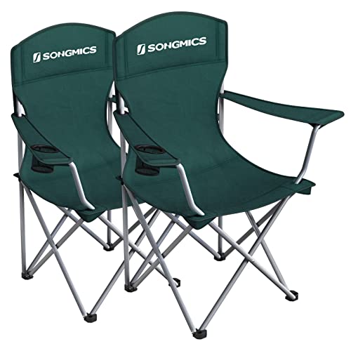 SONGMICS campingstol, 2-pack, vikbar, bekväm, hopfällbar stol med robust ställ, upp till 150 kg belastningsbar, med flaskhållare, utomhusstol, mörkgrön GCB08GN, XL
