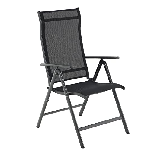 SONGMICS trädgårdsstol, fällstol, utomhusstol med robust aluminiumställ, ryggstöd 8-stegs justerbar, upp till 120 kg belastbar, svart GCB02BK