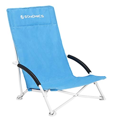 SONGMICS strandstol med högt ryggstöd, bärbar fällstol, hopfällbar campingstol, vikbar, lätt, bekväm och hög belastning, utomhusstol med bärväska, ljusblå GCB61BU