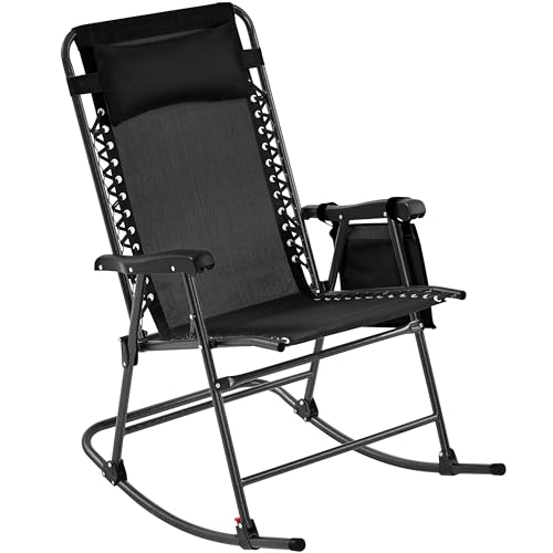 Yaheetech Gungstol, hopfällbar trädgårdsstol med avtagbar kudde, vikbar utomhusstol upp till 120 kg, kan belastas för utomhusbruk, svart