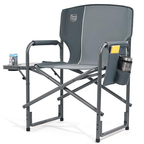 TIMBER RIDGE Campingstolar för vuxna, kraftiga, överdimensionerade regissörstolar, vikbara, 180 kg kapacitet aluminium utomhusstol med sidobord, bärbar för trädgård, fiskefestival, BBQ, grå