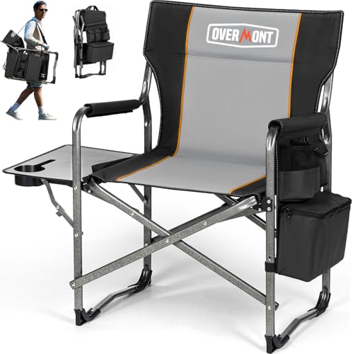 OVERMONT Överdimensionerade regissörer campingstolar för vuxna – 180 kg kraftiga hopfällbara utomhusstolar med fällbart sidobord och kylväska för utomhusfestival BBQ strand picknick fisk