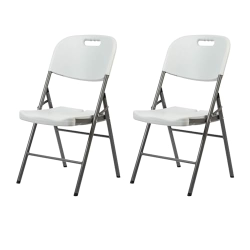 Rebecca Mobili Set med 2 hopfällbara utomhusstolar, trädgårdsstolar, vit grå, plast stål, platsbesparande för picknick camping - mått HxB x D: 88 x 45 x 50 cm - Art. RE7005