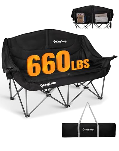KingCamp Större dubbel campingstol för vuxna, vadderade trädgårdsstolar, 2-sits med armstöd och mugghållare, vikbar överdimensionerad campingsoffstol upp till 299 kg, utomhusstolar för strandpicknick