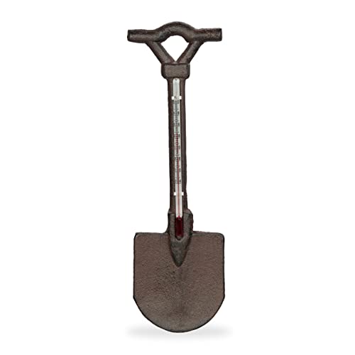 Relaxdays Utomhustermometer analog gjutjärn, trädgårdstermometer vägg, antik spatdesign, H x B: 30 x 9 cm, brun