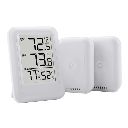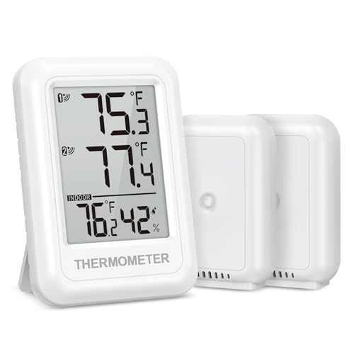 Ankilo trådlös termohygrometer, väderstation med 2 trådlösa utomhussensorer, inomhus- och utomhustermometer, ℃/℉-omkopplare, termometer för hem och kontor, räckvidd upp till 100 m