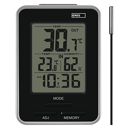 EMOS Digital termometer, utomhustermometer/inomhustermometer med 0,9 m kabelsensor och 24 timmars minnesfunktion, °C/°F, batteridriven