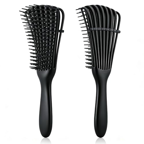 Daletu lockig hårborste, magisk utredningsborste smärtfri flicka anti-brott för afro 3A till 4C kinky/vågig/våt/torrt långt tjockt lockigt hår (svart)