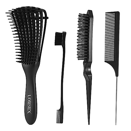 LORSEX Hårborste utredningsborste för svart naturligt hår, afro amerikansk typ 3a-4c, 3 st slick borste-set, plastborst retad kam kant (svart)