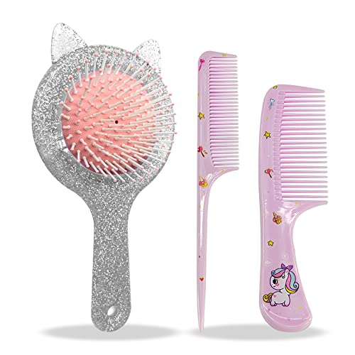 Hårborste för barn/flickor, set med utredningsborste och kam för vått, torrt hår, söt glänsande bortse med luftkudde, massageborste, rosa utredningsborste, frisörkam, 3 delar